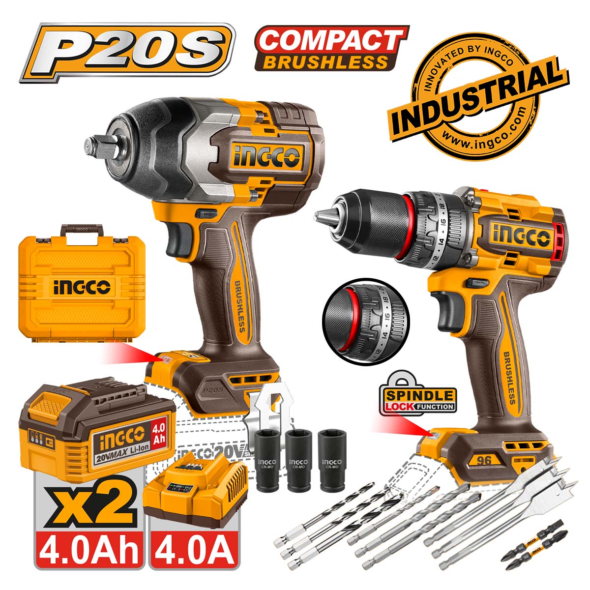 Ingco Σετ Κρουστικό Δραπανοκατσάβιδο & Μπουλονόκλειδο Brushless 20V με 2 Μπαταρίες 4Ah και Θήκη