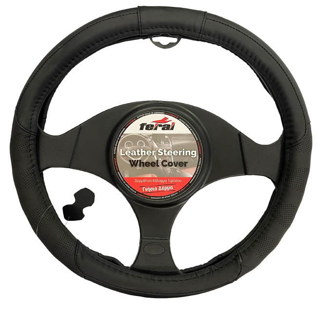 Κάλυμμα Τιμονιού Αυτοκινήτου Δερμάτινο Λείο Με Τρυπητό New Μαύρο Medium 38cm