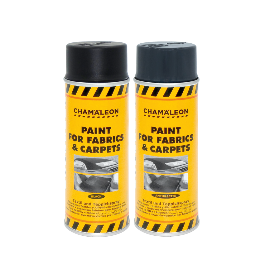 Σπρέι βαφής μαύρο για κουκούλες κάμπριο , υφάσματα και μοκέτες Fabrics & Carpets της Chamaleon , ίσως η τέλεια λύση όταν θέλετε να ανανεώσετε τα πατάκια του αυτοκινήτου σας, τα υφασμάτινα καλύμματα σε κάμπριο/καμπριολέ ή οποιαδήποτε άλλη υφαντική επιφάνεια στο αυτοκίνητό σας.
