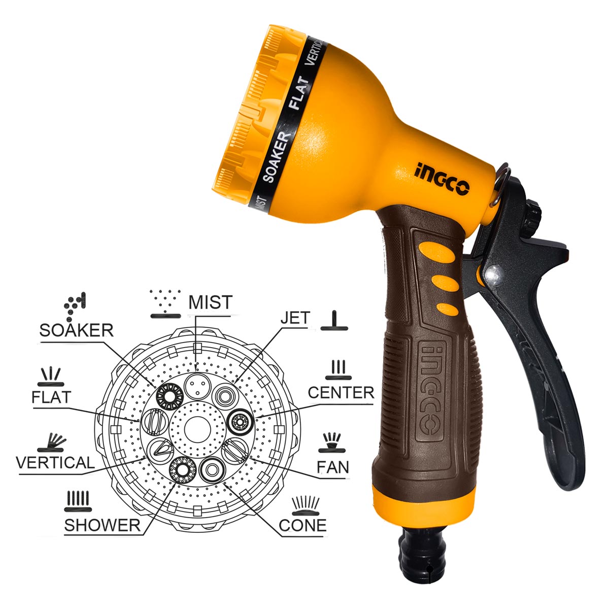 Ingco Εκτοξευτής Νερού Πιστόλι Ρυθμιζόμενος 9 Θέσεων
