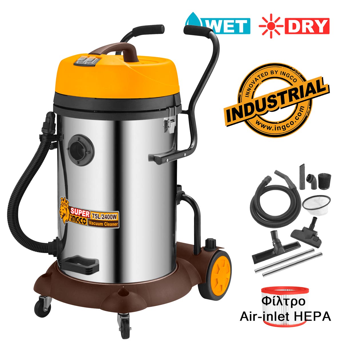 Ingco Ηλεκτρική Σκούπα Υγρών / Στερεών 75 Lit 2x1200W